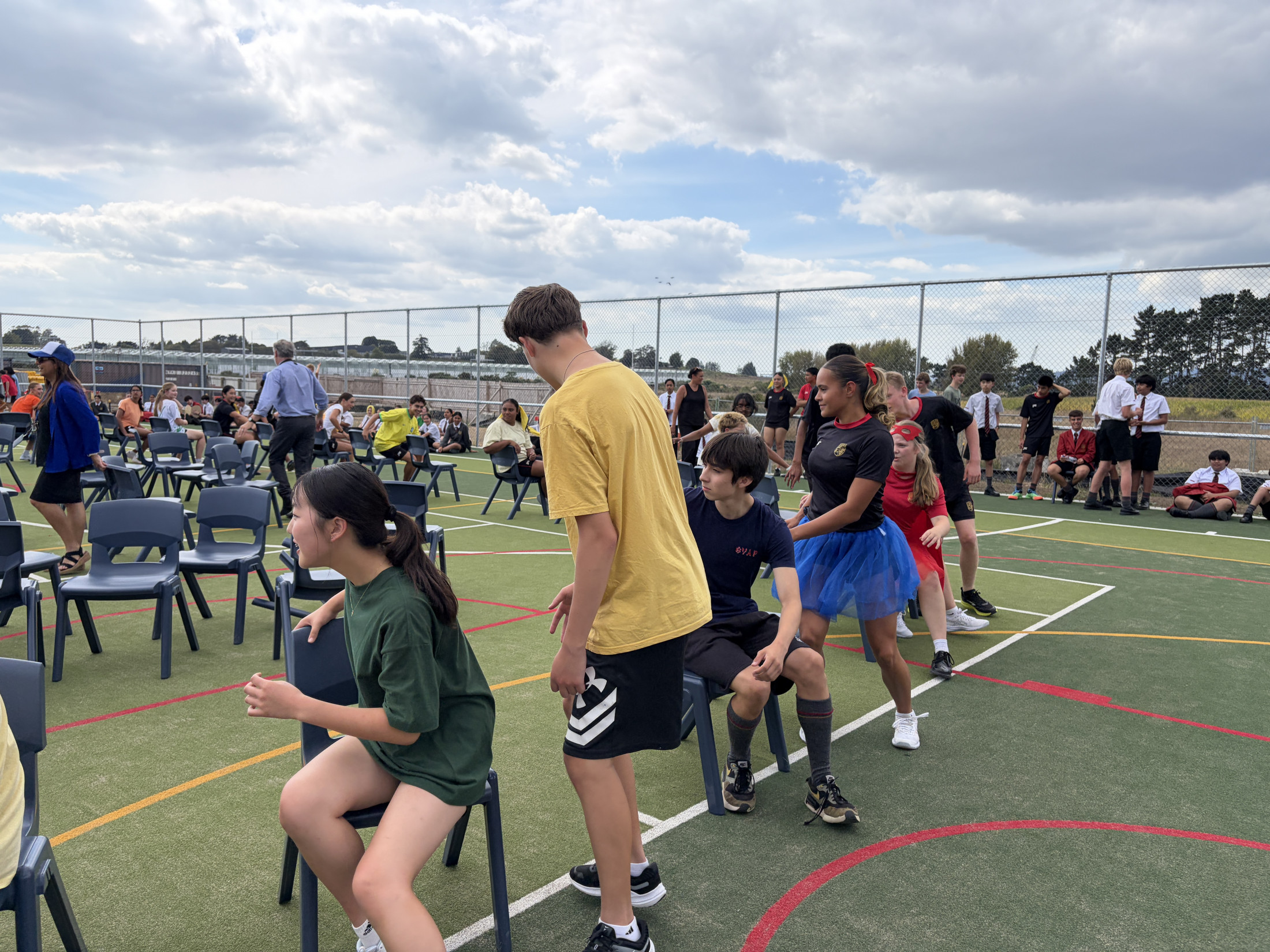 Each kaiārahi group selected representatives to compete, while the rest of their house cheered them on from the sidelines. The energy was high, the competition was fierce, and there were plenty of laughs along the way as students danced, moved, and raced for a seat each round.